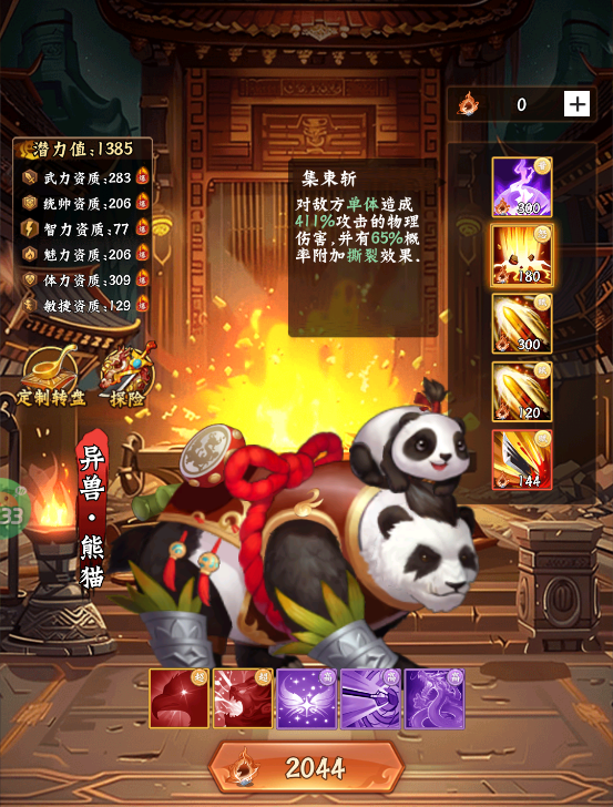 游戏中的异兽系统也挺有意思,九尾狐、青鸟、七彩鹿和熊猫各有独特的技能,战斗中能带来很大帮助。最让我心动的是全民大佬的设定,过五关斩六将的感觉太爽了!稀缺名将养成也是个亮点,每次抽卡都有惊喜。