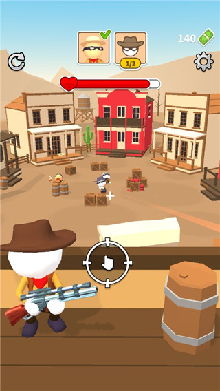 西部狙击手是一款极具特色的fps射击游戏,游戏采用3D引擎制作而成,荒野西部的卡通风格搭配上有趣味性十足的背景音效,浓浓的美式复古枪战就要开始了!游戏中你将在狂野史诗的大西部里扮演一名牛仔,然后为了维护小镇和平你要消灭所有的布娃娃强盗!同时在这里你还能体验到各式各样的丰富枪支武器,还有完全不一样风味的不同的地图场景等你探索挑战。另外,每当你完成任务时还能解锁全新的装扮,让你真正的成为一个出色的牛仔。