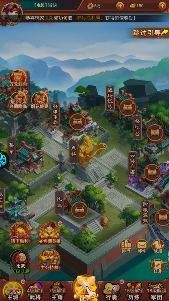 5、获得的奖励可以去集市购买法宝或者给武将升级的物品