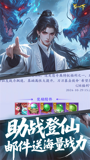 蜀山天下(狂暴打金0.1)是一款大型3D国风仙侠玄幻手游,玩家上线即可永久享受0.1折游戏充值福利,另有海量游戏礼包,帮助玩家快速成长。蜀山天下游戏以中国特色传统文化为背景,添加了如齐天大圣、般若地藏、青丘狐帝、阎王、龙子等职业角色,为玩家打造一个热血无双式的割草体验!游戏内精致的建模、炫酷的技能以及流畅的打击感,为玩家搭建了一个囊括天下奇闻的仙侠世界!