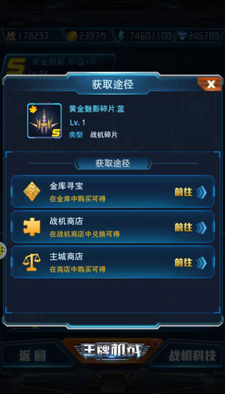 战机碎片可以从主线关卡、战机商店、主城商店中获得。其中,部分品级较高的战机碎片只可从商店内获得,而商店内的贩售道具每过一段时间就会自动刷新。如果看到了心仪的碎片,不要犹豫地买下吧!