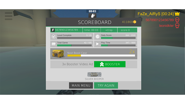 以最快的速度通过之后就能看到自己的成绩,在排行榜上与其他玩家相比较;除了平面之外最大的亮点就是各种高度的箱子,多加练习减少实战失误。