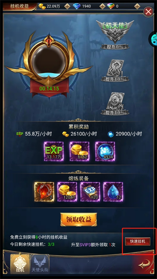 6、挂机奖励不要忘了领取后续还能开启快速挂机。