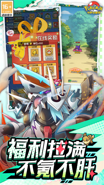 回合制限四招对战玩法,精灵mega进化、极巨化、神兽融合、限时狩猎等创新玩法。