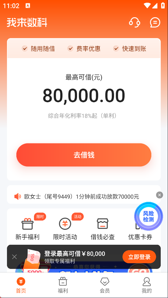 我来贷又叫我来数科,是一款专业借贷平台,这里拥有自主研发的风险管理系统,通过改系统可以帮助你实时监控自己的金融产品,有效的预防和阻止潜在的金融风险,在加上领先的大数据以及先进的人工智能技术,将为消费者提供专业的科技保障,软件致力于利用自主研发的科技提升金融服务以便改善人们的生活,用户在这里借款可以享受到的服务有:信用贷、零门槛、以及线上签约等,你可以凭借自己的身份信息以及自身的借贷信用申请贷款,然后通过人工审核进行极速审批,且全程线上操作,不需要面对面签约,十分方便工薪族进行快速贷款!