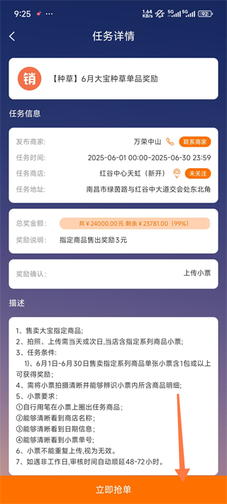3、用户通过下载蜂鸟特工APP轻松领取任务并按任务执行完成,即可赚取丰厚奖励红包