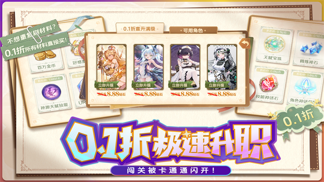 相比官方版,0.1折扣版最大的优势就是超低的价格,而且福利也挺丰厚。游戏特色包括每日签到送奖励、神族装备随便爆、超强阵容自由搭配,还有各种强力的SSR英雄唾手可得。特别是阿卡莎、莎德拉和凯瑟琳这些SSR角色,技能设计都很酷炫,既有高输出的战士,也有强辅助的牧师,满足不同玩家的需求。