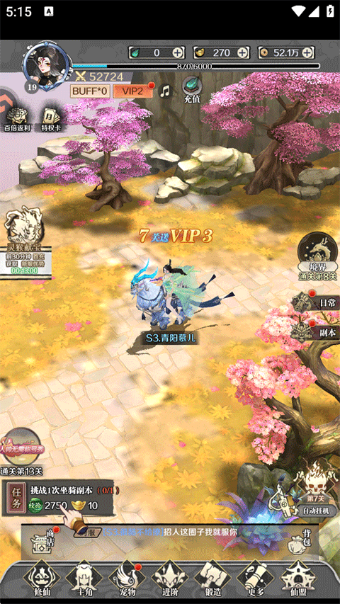 这款游戏画面绚丽,玩法丰富,剧情多变,包含上古神魔挑战等精彩内容。操作简单,支持一键自动闯关,随时随地轻松玩修仙。每天签到还能获得异兽坐骑和强力宠物伙伴,帮助玩家提升实力。