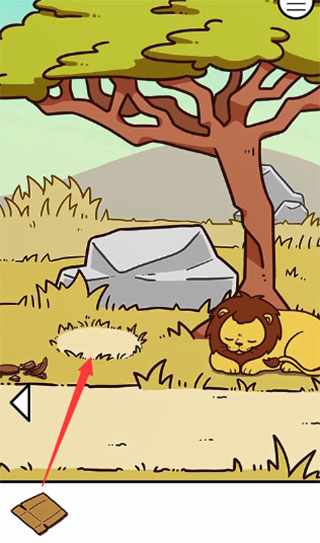 3、玩家需要在第二个场景中打碎罐子,取得纸箱。然后在第一个场景中将纸箱放在圆形的空地上。这样狮子就会钻进纸箱里,露出藏在身下的食物。最后取得食物吃掉就可以了