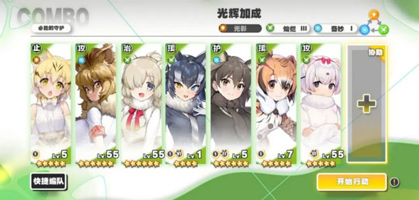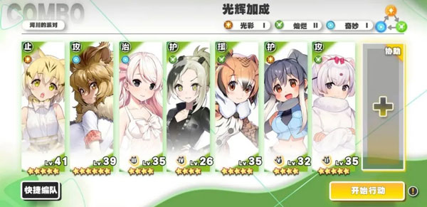 这个游戏有一个COMBO机制,翻译过来就是某特定组合的兽娘一起上场可以获得某种加成。