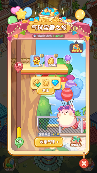 活动玩法: 放飞承载梦想的气球吧!通过合成指定的“活动订单”,为你的气球注入能量,让它越飞越高!每当气球达到一个新的高度里程碑,就能解锁对应的宝藏奖励!飞得越高,奖励越丰厚!
