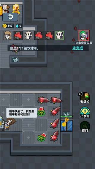 10、为了可以击败老板,玩家还需要在闲置的地方种植可乐、饮水机等装备