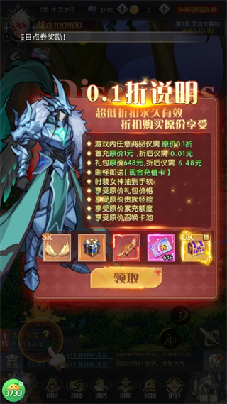 1、上线送648元充值卡、顶级时装天空套、大量抽奖券和极品道具
