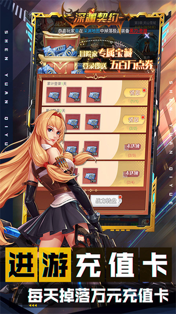深渊契约是一款魔幻冒险挂机手游,背景设定在被外来邪恶势力入侵的舞刃大陆。玩家将扮演天赋异禀的英雄战士,保护光熙城邦,挑战深渊跨服BOSS和各种特色玩法,比如多人副本、公会争霸、秘境寻宝等。游戏上线送648元充值卡、顶级时装天空套、大量抽奖券和极品道具,还有无限掉落充值卡和红包,特别是0氪党也能获得大量代金券,让玩家时间变得更有价值。