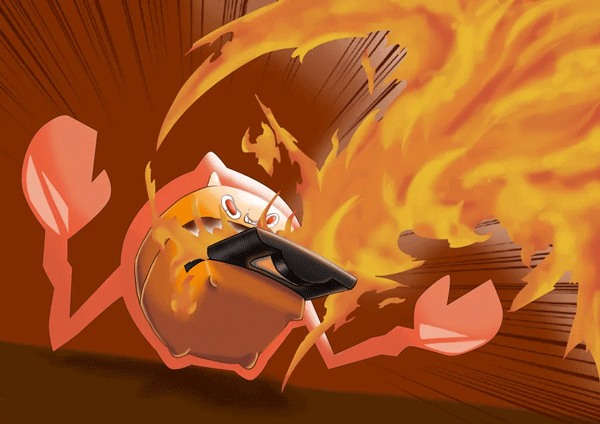 简介:炎帝拥有橘红色的毛发,强壮的四肢上戴着铁环。它的脸颊上长有红色六芒星状的结构,额头上嵌有三叶草一般的金黄色发壳。它的背后还有飘逸的白烟。