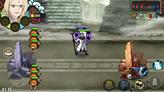 【经验等级】消灭敌方忍者来获取经验提升等级,以提高血量,增强攻击力。
