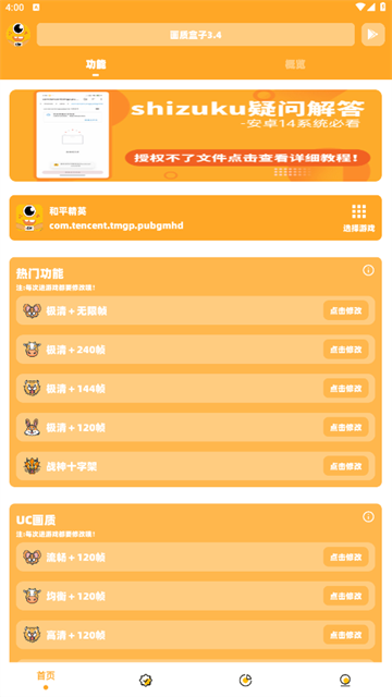 1、一键修改游戏中画质的帧数,以获得更清晰,更流畅的游戏体验。