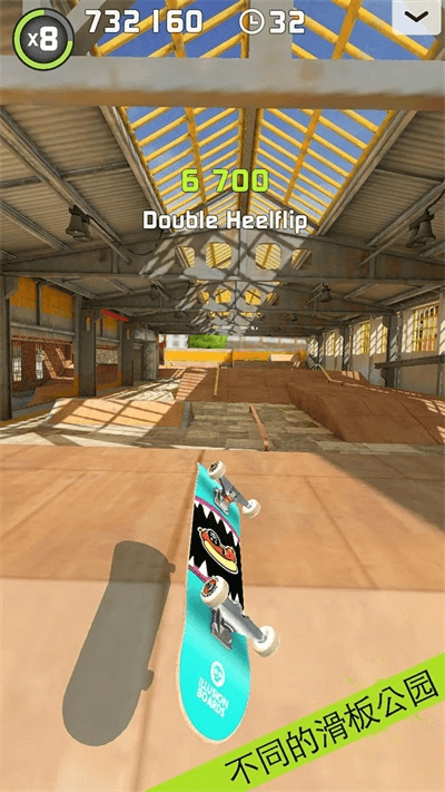 7、完成 100 个挑战来解锁全部的滑板公园、游戏模式、板面、滑板轮、砂纸和贴纸。