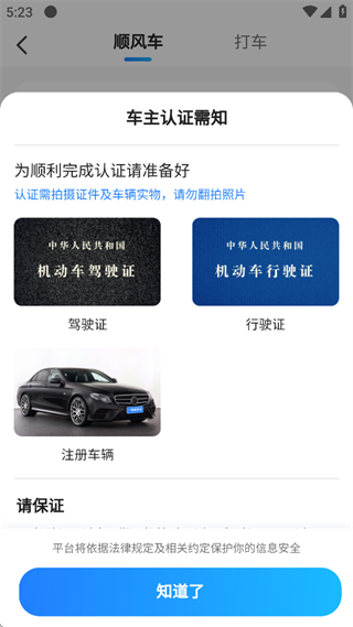 2、为顺利完成认证请准备好,行驶证、驾驶证、注册车辆