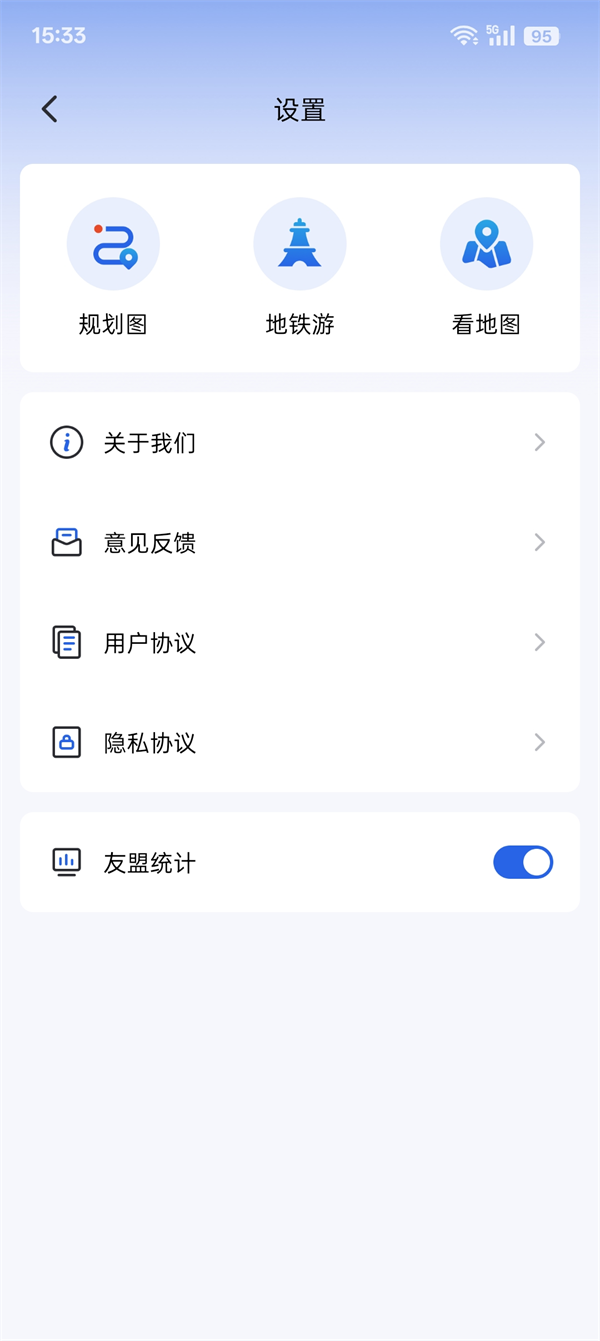 3、用户还可以通过【设置】里的【地铁游】功能来查询旅游景点