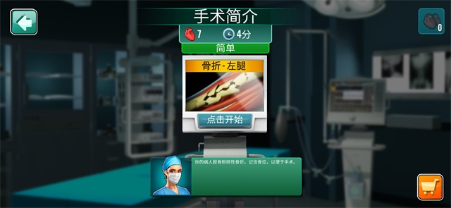 Operate Now Hospital医院手术时间无限金心金币中文破解版是一款真实模拟医院管理游戏。游戏让玩家扮演一名医院院长,管理和运营自己的医疗中心。在医院手术时间中,玩家需要处理医疗中心的日常运营,包括雇佣医生、护士,购买设备,管理预算和资源。玩家需要有效地分配资源,以确保医疗中心的顺利运作。此外,玩家还需要与其他医院进行竞争,争夺更多的患者和声望。玩家将亲自扮演医生,执行各种医疗程序,包括心脏手术、腹腔镜手术、疝气手术等。玩家需要对患者进行诊断,选择适当的手术步骤,并在限定的时间内完成手术。要成功完成手术,玩家需要精确操作,注重细节,并及时应对各种意外情况。如紧急病例、医疗事故和突发事件,玩家需要迅速做出决策,并采取适当的行动来确保患者的安全和治疗效果。