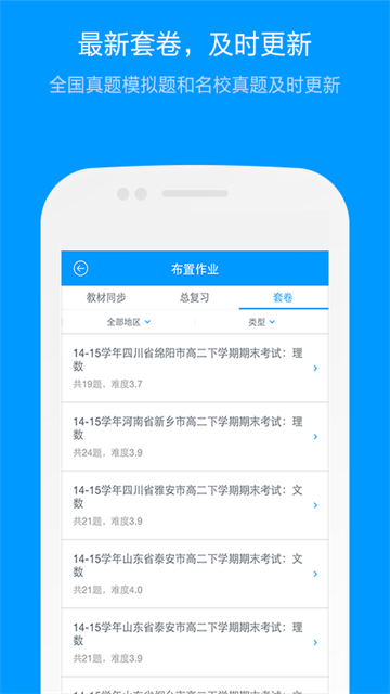 猿题库老师版app是由北京猿力教育科技有限公司倾力打造出的一款非常强大好用的移动端作业批改布置平台,在这里老师只需要选择出题的范围和题目的数量量,然后再选题目的难度就可以一键出题,完美的解决了老师大半夜,出题目的困扰。使用这款软件可以非常方便的查阅学生作业的完成度,也方便学生在学生端查看老师每天布置的作业情况。当学生完成了作业的时候,老师使用这款软件就能实时的在线获取每一名学生的作业数据,以及班级整体作业练习的情况和评估数据,极大程度的帮助老师提高了教学的效率与质量。使用这个软件可以为帮助老师实现一对一的教学方针,同时该软件内置了市场上最详细、优质的解析,囊括了全国初高中1000多所名校的三十多万道高品质试题,而老师使用这款软件,只需要选择好出题的范围和数量,就可以针对教学进度和学习情况,来握题目难度进行一键出题,完美实现教学的严谨性。