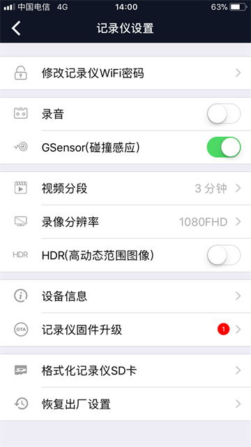 3、在WiFi设置中手动设置连接记录仪设备,接着返回APP开始使用。
