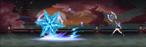 向前发出一个旋转的冰轮,冰轮会从小逐渐变大,会吸引命中的目标