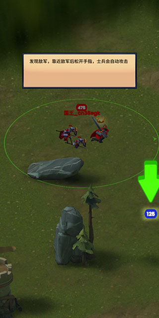 2、发现敌军,靠近敌军后松开手指,士兵会自动攻击。