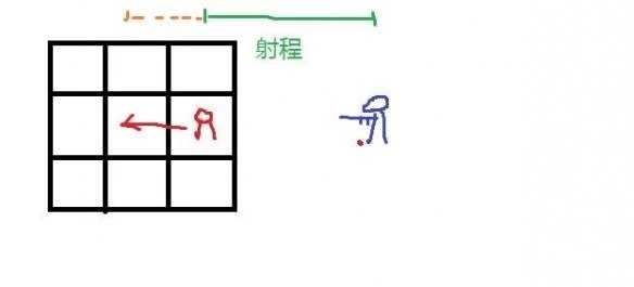 当拖动到5号位后,那么我方就与敌人又拉开了一段橙色的虚线距离,由图所示,可以清楚的看出我们已经超出了敌人的攻击距离。那么敌人无法攻击,就只能收起武器再次移动,我们就争取到了额外的攻击时间。
