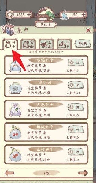 2、集市列表点击【种子】,寻找副业券。
