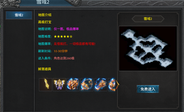 提升人物等级,可进入更高级的打宝地图,掉落更高级装备!