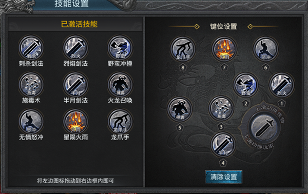 战士拥有刺杀剑法、半月剑法、烈焰剑法、逐日剑法、野蛮冲撞、无情怒冲、龙爪手、护体罡气、魔法盾、星陨火雨、十步一杀、施毒术、火龙召唤技能。