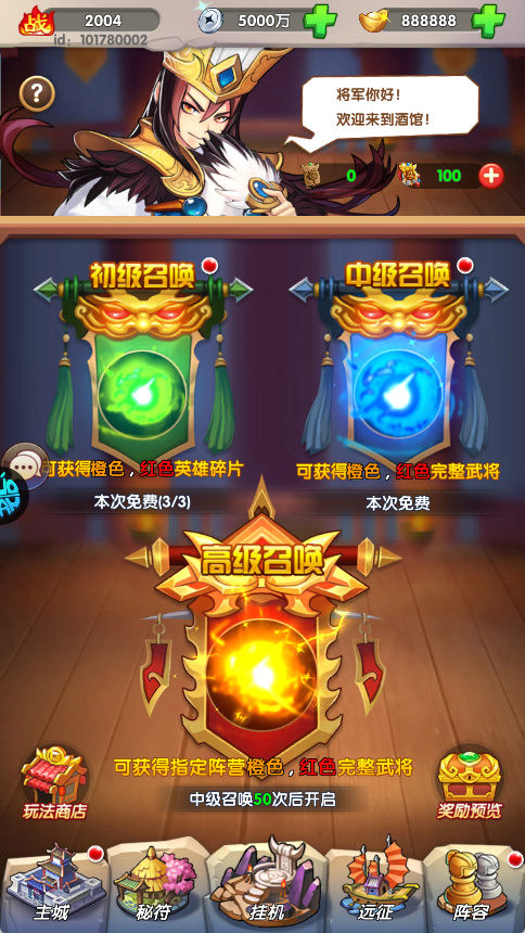 4、随后进入核心玩法之一的“抽卡”系统,体验招募三国名将的乐趣;