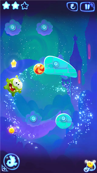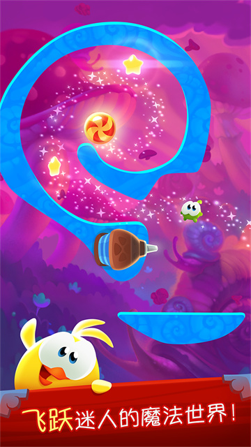 割绳子魔法中文破解版是一款非常好玩的休闲益智手游,采用了经典的竖屏2D经典画面,整个游戏背景都变得更加梦幻,某些关卡时不时还会出现一些星星光点,如梦如幻,就像来到浩瀚太空一样令人迷醉。这款游戏在前作的基础之上,加入了全新的魔法元素,以一种崭新的姿态出现在玩家面前,还加入了一个新的角色,一只黄色的小鸟,玩家们在挑战的时候可以点击左下角的“变身”按钮,绿皮小怪就会变成黄色的小鸟,而小鸟则可以漂浮在空中,玩家们可以利用此方法来完成一些有难度的挑战。游戏不断加入新的元素,本次的“变身”系统就是很不错的尝试,魔法的存在让绿皮小怪也能有神奇的变化,觉得它的意义不仅仅如此,还告诉大家只要努力,毛毛虫也能变成美丽的蝴蝶。