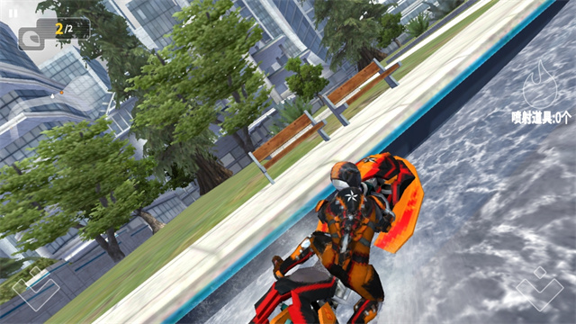 游戏还有警匪追逐模式,在城市河道或工厂废墟等复杂赛道中竞速,体验紧张刺激的水上飞车感。多人实时竞技和好友分屏对战也是亮点,AI对手和真实玩家混合比赛,难度更高,速度更快,非常考验驾驶技巧和策略。
