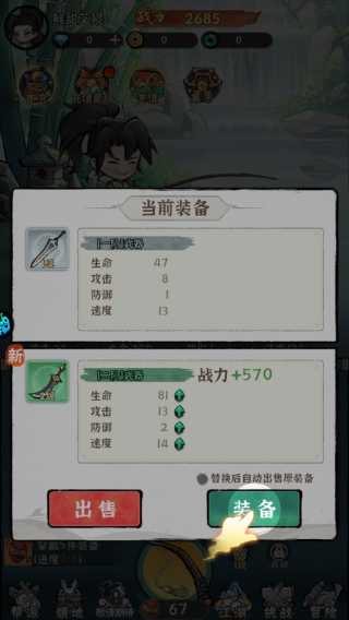 3、当获取到同样的装备时,可以根据装备的属性选择出售或是替换;