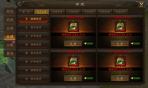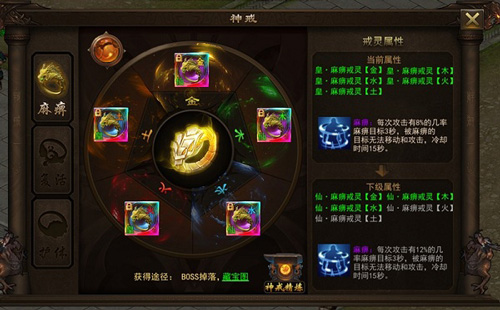 一、首先值得一提的是,游戏中的神戒,打破了传统游戏中常规的神戒模式,并非通过直接获得神戒开启,而是通过戒灵激活神戒效果。戒灵可以通过藏宝图和特戒BOSS掉落,放心地去挑战BOSS刷掉落吧!当你凑齐五行属性,也就是金木水火土5种戒灵,即可激活一个对应的对应的神戒属性!