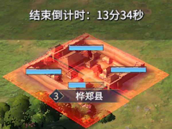 玩家需要先攻打下县城的四个地块,并摧毁其城防值,方可占领。同时攻打县城是有时间限制的,玩家需要在15分钟内迅速将县城攻打下来,否则超过规定时间还未能摧毁所有城防值,则被视为攻打失败。