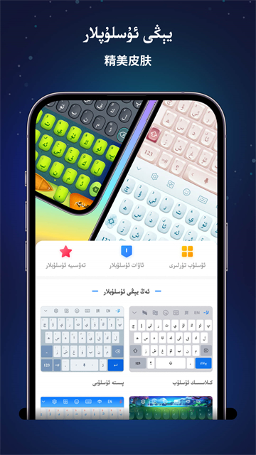 重新设计了输入法键盘和应用部分的视觉界面,添加了中文、维吾尔文、哈萨克文、柯尔克孜文多语言界面。