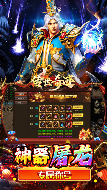 传世奇迹(高爆神器屠魔)是一款经典单职业传奇正版手游。游戏完美还经典传奇手游的热血攻沙、爆装打金核心玩法。采用超变设定,升级更快、爆率更高,散人也能轻松逆袭,更有豪华登录福利和每日BOSS挑战,带来畅快淋漓的传奇体验。无论是情怀老玩家还是新晋战士,都能在这里找到最纯粹的PK激情与兄弟情义!快来征战沙场,成为这篇大陆的王者吧!