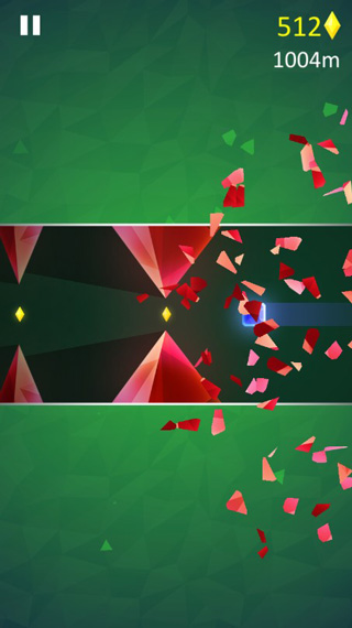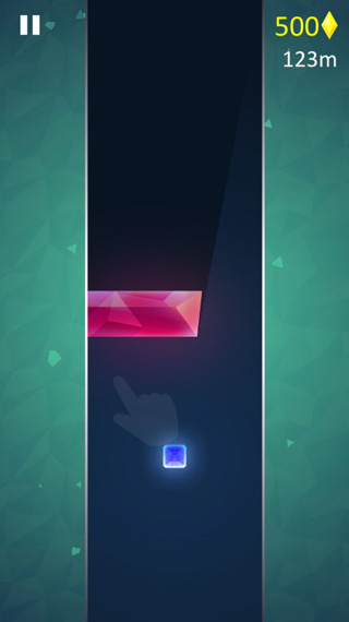 游戏唯一的模式只有无尽模式,为了刷新每次体验的新鲜感,游戏加入了像素、黑白等其四种滤镜,而且每次撞击障碍后,画面色彩有可能随机变换,配合悦耳的现代流行电音,玩起来真的很爽!