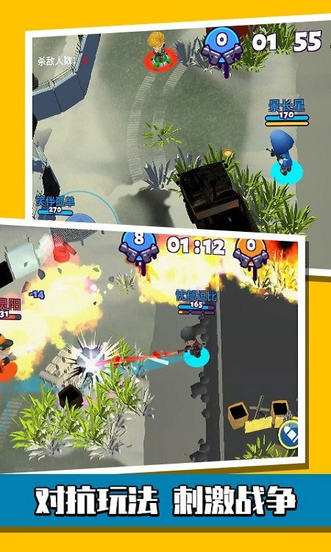 游戏操作简单容易上手,拖拽左边的摇杆进行移动,点击右边的按钮发射子弹,即可向敌人发起攻击。简单的操作设定更考验走位和预判,无限拓展操作空间。
