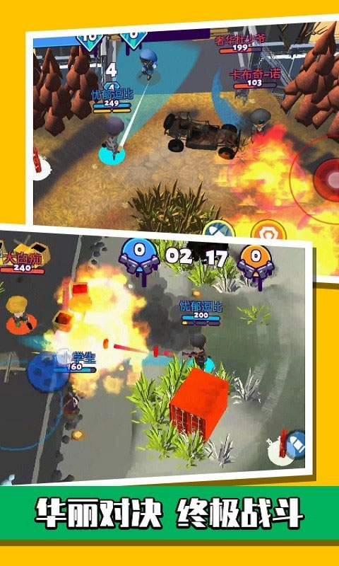 2、点击右边的摇杆进行射击,自动瞄准最近的敌人并标记为红色。