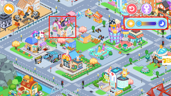 进入游戏我们可通过右上方滑轮切换当前的时间对应的风景,选择不同的建筑可进入相应的场景