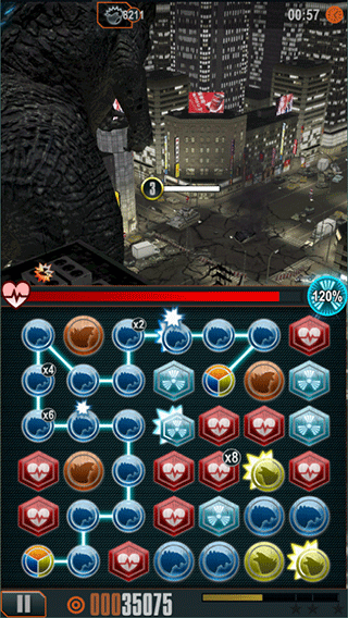 2、该游戏结合了哥斯拉的破坏活动和三消游戏。