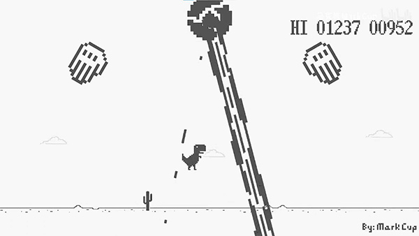 2、控制小恐龙不断的进步,要当心各种障碍物和圈套
