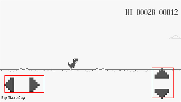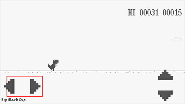 3、左下角的按钮可控制小恐龙奔跑的速度;