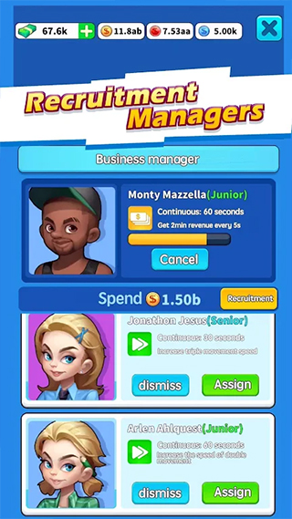 每次在合成高等级的汽车后,都将扩大停车位的获取,由此增加的格子数,可以放置更多的赛车。在赛车运营期间,玩家可通过雇佣经营主管来加速关于赛车在赛道中的奖励获取条件。不同的主管对于赛道的加持收益会有大不同。