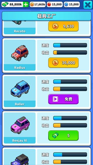 首先游戏中停车位是限定的玩家可以将相同等级的赛车进行两两合成,高等级的汽车可以将其放置在赛道上来进行金币资源奖励的领取(在这期间是全自动化的)